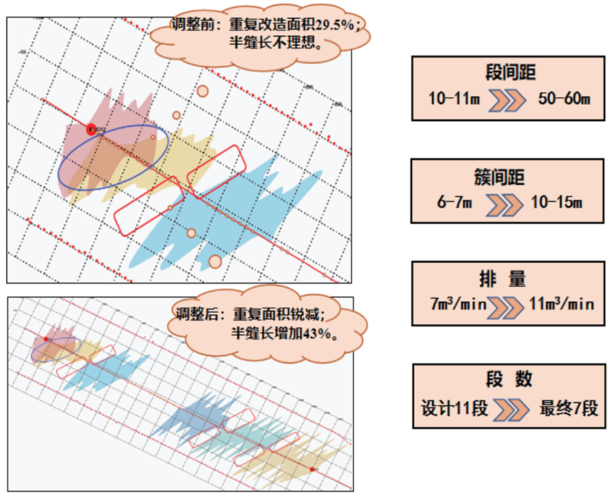 第二段壓裂施工完成后,重復(fù)改造面積達(dá)30%,半縫長(zhǎng)不足80m,遠(yuǎn)不及預(yù)期;