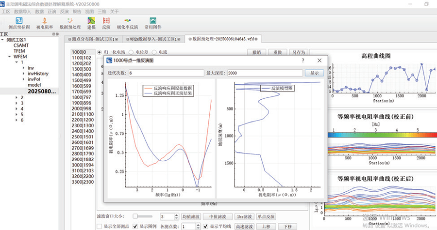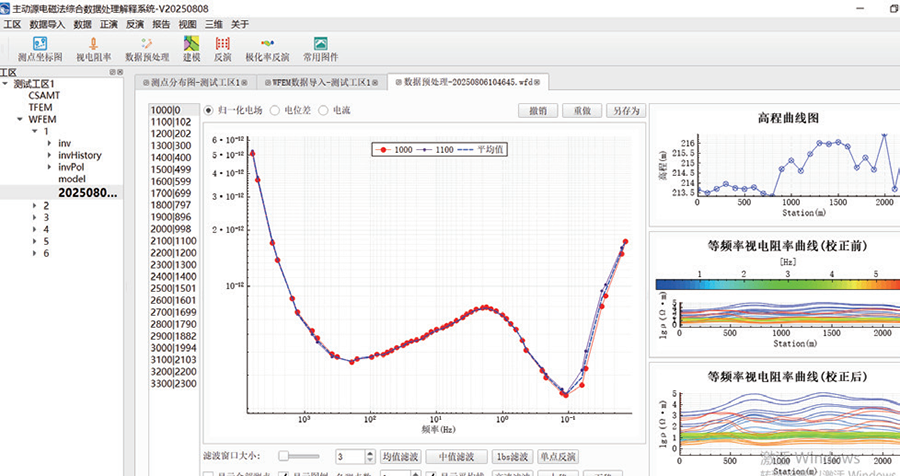 2、數(shù)據(jù)預(yù)處理:能夠?qū)?shù)據(jù)直接拖動,濾波,單點(diǎn)反演等功能。
